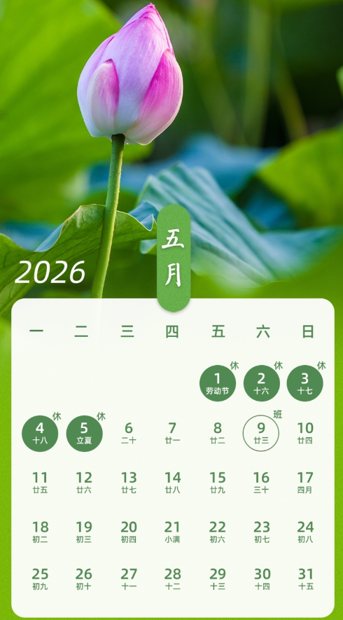 さて、誠に勝手ながら、下記の通り2026年中国労働節GWの休業期間をお知らせさせて頂きます。